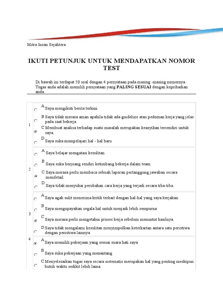 Soal Psikotes Pt Mitra Insan Sejahtera / Loker Pt Mitra Insan Sejahtera Kaskus / Contoh soal psikotes pt mitra insan sejahtera.